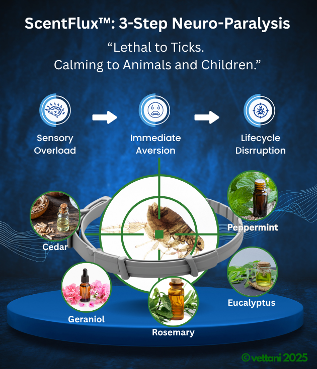 - Full-scale Neuro-Sensory Overload: Prevents parasites from latching onto your pet.